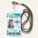 Un design moderne et unique avec un arrière - plan turquoise en marbre vert, photo, code-barres et modèle de logo. Customisez facilement ce badge à votre marque. -conçu avec Zaubershirts-