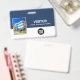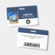 Personnalisez facilement ce badge personnalisé du visiteur ou de l'employé avec photo, code de la barre d'analyse et logo de l'entreprise, y compris la nacelle. Un design d'entreprise simple en bleu marine et blanc entièrement personnalisable en tailles avant et arrière, sans-serif polices de base et moderne et un look professionnel et clair. Disponible avec ou sans nacelle, clip métallique ou avec rétractable. Pas de commande minimum.