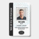 badge d'identification d'employé entièrement personnalisable avec un motif arrière - plan géométrique. Personnalisez avec votre photo d'identité, votre numéro d'employé, le titre de l'emploi, le nom de l'entreprise, le logo et la date d'émission/expiration. Au verso, vous pouvez ajouter votre code à barres/code QR et des informations supplémentaires. Ce modèle élégant est idéal pour divers lieux de travail et professions tels que gardien de sécurité privé, sécurité des magasins, garde du corps personnel, portier officiel, sécurité des événements, professionnel de l'entreprise, employé de détail, personnel médical, laissez-passer de petite entreprise, étiquettes de nom de conférence et plus encore. Couleurs imprimées : bleu, or, noir et blanc. Magasinez la collection pour plus d'insignes et étiquettes à vendre en ligne, conçu pour l'industrie des services de sécurité.