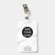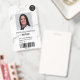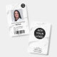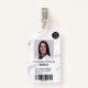Une infirmière en marbre noir et blanc moderne et professionnelle, badge photo avec logo et code barre.