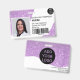 Une parties scintillant violette moderne et professionnelle brille l'insigne d'identification photo de l'infirmière avec logo et code-barres disposition horizontale.