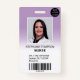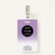 Un badge d'identité photo moderne, et professionnel pastel violet lavande sombre infirmière avec logo et code barre.