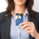 Un modèle photo facile à personnaliser avec un arrière - plan motif géométrique. Personnalisez facilement avec le nom, la photo et d'autres détails. Idéal comme carte d'identité professionnelle de l'employé.