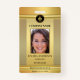 Élégant badge d'identification photo design or avec espace pour votre photo et logo personnalisé. À l'arrière, vous pouvez ajouter un code à barres personnalisé ou un code QR ainsi que des textes supplémentaires ou supprimer les modèles. Vous pouvez également copier et coller le design et les photos de l'avant vers l'arrière si vous le souhaitez.