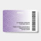Version horizontale avec un Motif tribal violet et blanc Un design d'entreprise moderne qui met en valeur le logo de votre bureau et le nom de votre employé. Ce design branché de petite entreprise comprend également un numéro d'identification d'insigne, la date d'expiration et une grande zone pour infirmière, essentielle ou tout poste. RETOUR : Vous pouvez ajouter un code à barres de numérisation au verso et un endroit pour ajouter des informations si le badge est perdu. Vous pouvez également modifier la couleur de l'arrière - plan. Cliquez sur le bouton personnaliser et choisissez une couleur arrière - plan pour l'avant et l'arrière.