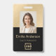 Faites une impression professionnelle et élégante avec ce badge d'identification d'employé élégant. Doté d'un design moderne avec des lignes claires et des détails en métal brossé or, ce badge est à la fois visuellement attrayant et facile à lire. Personnalisez le badge avec le nom de votre employé, sa photo, son titre de poste et des informations supplémentaires au verso pour créer un look personnalisé et professionnel. Ce badge est parfait pour les entreprises de toutes tailles et peut être utilisé dans divers contextes.