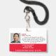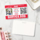Un badge d'identification de code QR pour chien de service assure une identification rapide, avec la photo, le nom et le numéro d'identification du chien de service en lettres majuscules sur fond blanc et rouge. Un code QR renvoie à des informations détaillées ou à une vérification. Le verso comprend la photo et le nom du manipulateur pour une vérification facile, ainsi que des coordonnées au cas où le badge serait perdu. Cette conception garantit que le rôle du chien de service et les informations du manipulateur sont clairement communiqués et protégés.