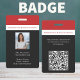 Un badge de personnel professionnel pour les enseignants, les éducateurs, le personnel de votre campus scolaire. Fonctionne pour tous les types d'écoles privées, publiques, maternelles, élémentaires, secondaires et collèges. Thème de couleur moderne rouge, blanc et noir. Ajoutez la photo des employés, le titre du poste et la devise ou le credo de l'école. L'utilisateur a la possibilité d'ajouter un code QR.
