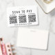 Badge moderne pour votre entreprise pour collecter des paiements en déplacement avec la possibilité de télécharger 3 codes QR pour différentes applications de paiement sans contact permettant aux clients de scanner pour effectuer des paiements. Téléchargez vos codes QR et ajoutez le nom de votre entreprise en typographie simple.