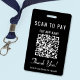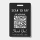 Obtenez un paiement où que vous fassiez des affaires avec ce badge de code QR Scan to Pay noir, propre et professionnel. Ce badge léger permet aux clients d'envoyer un paiement instantanément avec un scan rapide - parfait pour un service mobile, des événements chargés et un paiement en déplacement. La mise en page minimaliste présente un appel à l'action gras, un code QR clairement centré, un message amical "Merci" et une typographie blanche moderne. Téléchargez votre code QR et ajoutez le nom de votre application de paiement et le nom de votre entreprise pour un look soigné et marqué. Idéal pour les fournisseurs, les artistes, les barmen, les coiffeurs, les artistes maquilleurs, les chauffeurs-livreurs, les vendeurs de marché et le personnel d'événement, ce badge de paiement portable permet un paiement rapide, sans contact et pratique - aucun espace de comptoir nécessaire.