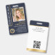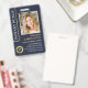 Créez une apparence professionnelle avec ce badge d'identification de notaire. Un design élégant comportant une plume d'oie à l'intérieur d'un symbole en forme de sceau. Ce modèle est personnalisé avec votre photo de profil, votre nom, les informations de service, les coordonnées et un code QR. Un mélange classique de styles traditionnels et contemporains, créant une esthétique élégante et conviviale. Texte entièrement personnalisable pour s'adapter à la marque de votre entreprise. Parfait pour un notaire, un agent de signature de prêt, un agent de livraison de confiance certifié notaire (CNTDA), un notaire mobile, un apostille ou un autre professionnel du droit. Couleurs imprimées : bleu minuit foncé (bleu-noir), noir, blanc et éléments de couleur or. Explorez la collection en ligne pour plus d'idées de produits populaires et de fournitures, conçues pour les notaires !