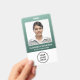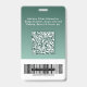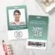 Créez une apparence soignée et professionnelle avec ce badge de photo d'employé personnalisé, conçu pour une identification claire et une image de marque moderne. Ce badge présente un fond dégradé vert sauge, votre logo d'entreprise, une zone dédiée à la photo de l'employé, un affichage de nom en gras et un titre d'emploi personnalisable pour une reconnaissance facile. Le verso comprend une grande section de code QR et de code-barres, ce qui le rend idéal pour le contrôle d'accès, les enregistrements, les systèmes de gestion des stocks ou le partage d'informations numériques. Parfait pour les bureaux d'entreprise, les petites entreprises, les équipes de vente et de service client, le personnel de santé et d'éducation, les événements, les conférences et le personnel de sécurité.