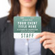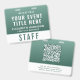 Créez une apparence calme, professionnelle et moderne avec ce grand badge, conçu pour une identification transparente et une signalétique événementielle élevée. Doté d'un dégradé de vert forêt à sauge riche, ce badge offre une esthétique naturelle et raffinée qui se démarque tout en restant propre et facile à lire. La mise en page met clairement en évidence le titre de votre événement, le nom et le rôle du personnel, ainsi qu'une désignation "PERSONNEL" (ou VIP, FOURNISSEUR, ÉQUIPE, etc.) en gras pour une reconnaissance rapide. Le verso comprend un grand code QR scannable, parfait pour les enregistrements numériques, les horaires, les justificatifs d'identité ou le partage de contacts -- faisant de ce badge à la fois un accessoire élégant et très fonctionnel. Parfait pour les retraites bien-être, les événements de yoga, les marques éco-responsables et les conférences sur la