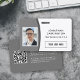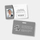 Un badge d'identité photo minimaliste et moderne pour les employés de l'entreprise et de l'entreprise avec un design gris. Customisez avec le logo de votre entreprise et la photo de l'employé. Modifiez la couleur ou laissez-la telle quelle, ajoutez votre URL pour le code QR et modifiez les informations supplémentaires sur le dos si nécessaire. Veuillez consulter les autres options de badge employé/entreprise dans la collection de badges photo personnalisées ID employé.