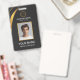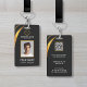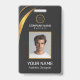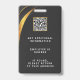 La conception moderne de badge noir et or présente votre logo d'entreprise et un code QR personnalisé au dos. Ajoutez le nom de l'employé, le nom/l'intitulé de l'entreprise, le logo (photo ou autre graphique) et les coordonnées. Vous pouvez personnaliser la taille du texte, la police et la couleur en fonction de vos préférences personnelles. Entrez une adresse URL pour créer un code QR scannable lié à votre site web, vos profils de médias sociaux ou toute autre plateforme.
