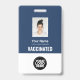 Personnalisez facilement ce Badge Nom de Passe de Vaccin Personnalisé pour Employé avec Photo, Scannez le Code Qr ou le Code Barres et le logo de l'entreprise. Un design simple et professionnel dans les couleurs bleu marine et blanc entièrement personnalisable en tailles avant et arrière, avec des polices basiques et modernes sans serif et un aspect clair et professionnel. Disponible avec un cordon, un clip métallique ou rétractable. Aucune commande minimum.