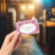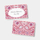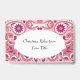Ce nom ou badge d'identification a un motif paisley vif réalisé dans des nuances de rose et de blanc avec des gouttes de larmes et des fleurs de type marguerite. Personnalisez votre nom et vos informations dans l'ovale blanc avec les modèles.