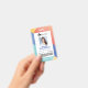 Moderne, motif géométrique coloré en quatre couleurs comprenant un motif abstrait moderne jaune, corail, bleu et sarcelle en arrière-plan. Les informations de la carte d'identité, le logo, la photo d'identité, le numéro d'identité et le code-barres facultatif sont soigneusement conçus à l'intérieur du cadre blanc central avec le titre du poste affiché le long du bas de la carte. Le verso présente la même conception avec une adresse et un logo.