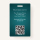 Un badge d'identité d'entreprise moderne et élégant conçu dans une palette de couleurs vert profond. Facilement personnalisable avec une photo d'employé, son nom, son titre, le logo de l'entreprise et d'autres détails commerciaux. La mise en page comporte une typographie propre pour une apparence professionnelle et claire, assurant une identification facile. Ce badge d'identification est disponible avec des options pour un cordon, un clip métallique ou un support rétractable. Aucune commande minimale requise.