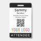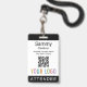 Personnalisez notre badge d'événement professionnel avec votre logo, le nom du participant et d'autres textes personnalisés. C'est du plastique pvc et disponible avec une nacelle, un clip ou une bobine rétractable. Conçu en noir et d'autres couleurs avec un design minimaliste moderne par MISOOK. Toutes les couleurs sont personnalisables. Vous pouvez éventuellement ajouter du contenu à l'arrière. Customisez facilement le titre du participant (invité VIP, visiteur, conférencier, etc.). Pas de quantité minimale de commande et pas de frais de configuration.