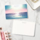 Belle photo de paysage marin de plage tropicale au coucher du soleil, présentant un coucher de soleil incroyable aux couleurs iridescentes sur la mer, un océan bleu aux vagues calmes, du sable de plage bleuâtre brillant et un grand soleil blanc brillant, projetant un mélange de couleurs pastel rose, sarcelle, bleu, jaune vert à l'horizon de la côte. Cette image originale de la mer paradisiaque tropicale unique apporte à tout décor un sentiment de vacances d'été calmes et détendues.