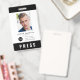 Appuyez sur le badge d'identification photo avec une couleur de bordure supérieure modifiable (cliquez sur customiser, sélectionnez "NameTagBadge3.2" et changez de couleur), la couleur de arrière - plan arrière modifiable et vous pouvez également ajouter votre logo. Idéal pour les journalistes, journalistes, photographes, écrivains, blogueurs, etc.