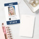 badge d'identification photo du PERSONNEL avec une couleur de bordure supérieure modifiable (cliquez sur personnaliser, sélectionnez le calque "NameTagBadge3.2" et changez de couleur), éditable couleur arrière - plan arrière et que vous pouvez également ajouter votre logo. Idéal pour tous les types de personnel sur les lieux de travail et les événements tels que réunions, conférences, concerts, spectacles, expositions, etc. Personnalisez-le en remplaçant le texte de l'espace réservé et les images de l'espace réservé par le vôtre. Pour plus d'options comme changer la police, il est taille et espacement entre les lettres, et arrière couleur arrière - plan cliquez sur le bouton "Personnaliser". *Veuillez noter que le filigrane Zazzle qui apparaît dans l'aperçu du zoom n'apparaîtra PAS sur le produit imprimé final. © Bois de rose et agrumes