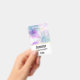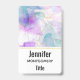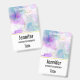 Un nom avec une belle peinture artistique. Créé avec des encres d'alcool à couler. Couleurs violettes, vertes et bleues qui se mélangent. Des rubans d'or ondulés minces se mêlent à ces couleurs douces et douces.