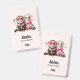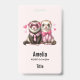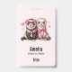 Nom badge avec une jolie illustration. Une paire de loutres en vêtements rose. Portant des chemises rayées, l'une portant une cravate et l'autre portant un arc. Entouré de coeurs d'amour.