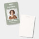 This elegant ID badge design features a streamlined, vertical layout with a sophisticated sage green background that exudes professionalism. The design places a strong emphasis on personalization, framing the employee's photo prominently at the center. With your company name subtly placed at the top and the employee's details below, this badge is perfect for creating a polished, unified, and easily recognizable look for your entire team.