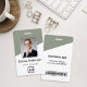 Create a stylish and modern impression with this professional ID badge design. The layout features a chic sage green and white diagonal color block for a contemporary visual flair that catches the eye. The clean typography and prominent photo placement ensure instant recognition, making this a perfect choice for a sophisticated corporate image.