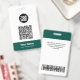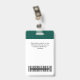 Easily personalize this Custom Administrative professional Name Badge without photo, featuring an easy copy and paste qr code template, Scan Bar Code and large business logo. A simple business design in dark green and white colors fully customizable in front and back sizes, sans-serif basic and modern fonts and a professional and clear look, perfect for small business employee, boss, guests. These business id badges supplies are avaiable with lanyard, metal clip or with retractable. No minimum order, but save money and enjoy Zazzle discounts by multiple orders!