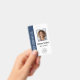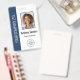 Achieve a professional, structured look with this clean vertical ID badge design, highlighted by a striking dark navy blue vertical sidebar that clearly frames your company name. The main white section offers high visibility for the employee's photo, name, and title, ensuring a clear identity display. A neat circular space at the bottom is perfectly reserved for your company logo, delivering a polished, modern, and corporate-ready appearance.