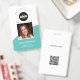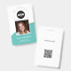 Personalized employee id card - identification modern minimalist simple green teal and white badge with your custom company logo, photo, name, title, QR code or barcode, and other details - if needed. +++++++++++++ Easy to personalize with your info on both sides! +++++++++++++++ Suitable for corporate employees, managers, executives, accountants, business office staff, warehouses, retail and logistic companies, special event personnel. +++++++++ Please note that the background color, fonts, and sizes of text can be changed. You can upload a scanning QR code or bar code or add any other text on the backside.