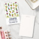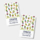 Nom badge avec un motif mignon et amusant. Illustrations de différents cactus, assis dans des pots de fleurs avec des visages joyeux et souriants caricaturaux.