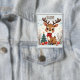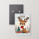 Badge Cute Christmas Reindeer Scene Snowy Forest