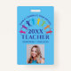 Badge Cute Custom School Teacher Rainbow Nom bleu