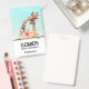 Nom badge avec un dessin mignon en aquarelles d'une maman et de la petite girafe. La girafe mère se repose la tête au-dessus de la petite girafe, aimante et adorable. Joli bouquet de fleurs d'aquarelle rose, jaune, vert placé sous cette paire de chatons. Un arrière - plan dégradé de bleu turquoise délicat qui se fond dans une couleur sable brun.