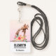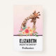 Nom badge avec un dessin mignon en aquarelles d'une maman et de la petite girafe. La girafe mère se repose la tête au-dessus de la petite girafe, aimante et adorable. Joli bouquet de fleurs d'aquarelle rose, jaune, vert placé sous cette paire de chatons. Un arrière - plan dégradé créé avec une couleur rose douce qui se fond dans une couleur orange clair et achalandée.