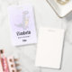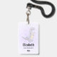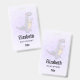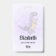 badge de nom personnalisé avec une jolie illustration représentant un dinosaure gris violet.