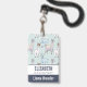 badge de nom personnalisé avec un motif mignon avec lamas fantaisie. L'un est allongé, l'autre tient une fleur dans la bouche, et l'autre vous regarde de manière suspecte. Ces animaux ont beaucoup de charme. Placez-vous sur un arrière - plan à pois vert.
