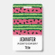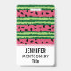 Un nom avec un mignon motif de pastèque. Croûte verte en couches de rayures avec une couche de rayures roses avec des graines noires à l'intérieur. Amusement et design estival.