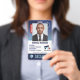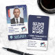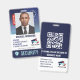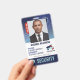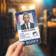 Medium sized vertical employee ID badge for your cyber security department, with fitting graphics and colors. Security is written at the bottom of the badge with a shield with a keyhole next to the text. Customize the security ID badge with name, title, department, ID number, issue date and expiration date, and logo. On the back, there's a QR code and additional customizable text. Professional looking without compromising style!