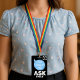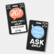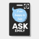 Rendez les bénévoles faciles à identifier et les bienvenus avec ce badge en forme de bulle de dialogue recto-verso pour cordon. Le devant présente des bulles de dialogue amicales avec le texte « Salut ! Comment puis-je aider » ainsi que Bénévole et un espace pour ajouter un nom et un logo. Le verso indique « Je suis ravi de vous aider — demandez [nom] », assurant une visibilité et une approche de tous les angles.