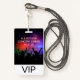 Concerts et grands événements tous accèdent à VIP pass badge modèle pour customiser avec un arrière - plan de la foule de spectateurs de concert et lumières colorées avec le texte blanc superposé. Personnaliser pour les VIP, le personnel, la presse ou d'autres utilisations, Ajouter d'autres informations sur l'événement au verso de l'insigne en lettres blanches sur noir.