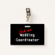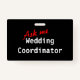 Ce badge noir dit "Ask Me" en rouge. Vous pouvez également personnaliser le badge avec votre titre comme "Coordinateur Mariage".