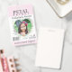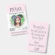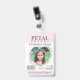 Personnalisez le badge de l'agent de la patrouille des pétales avec un mot de remerciement et un cadre en forme de cœur avec des accents florissants pour la photo de votre fille de fleurs.