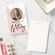 Un badge photo de notaire moderne et tendance avec une seule photo, des coordonnées sur un fond rose gold et rose pâle. Personnalisez davantage avec vos détails et votre logo.