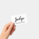 Typographie de script tendance badge de nom de juge pour les compétitions et les concours.