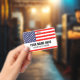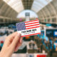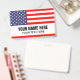badge de nom de bandeau personnalisé avec drapeau des États-Unis. Étiquettes en plastique avec clip en métal et option cordon de lanière. Texte personnalisable Ajoutez une photo sur le dos en option. Cartes d'identité utiles pour bureau, travail bénévole, événements, réunion, réunion, fête 4 juillet, festival, équipes sportives, clubs, délégation politique et plus encore. Le drapeau américain de la fierté.